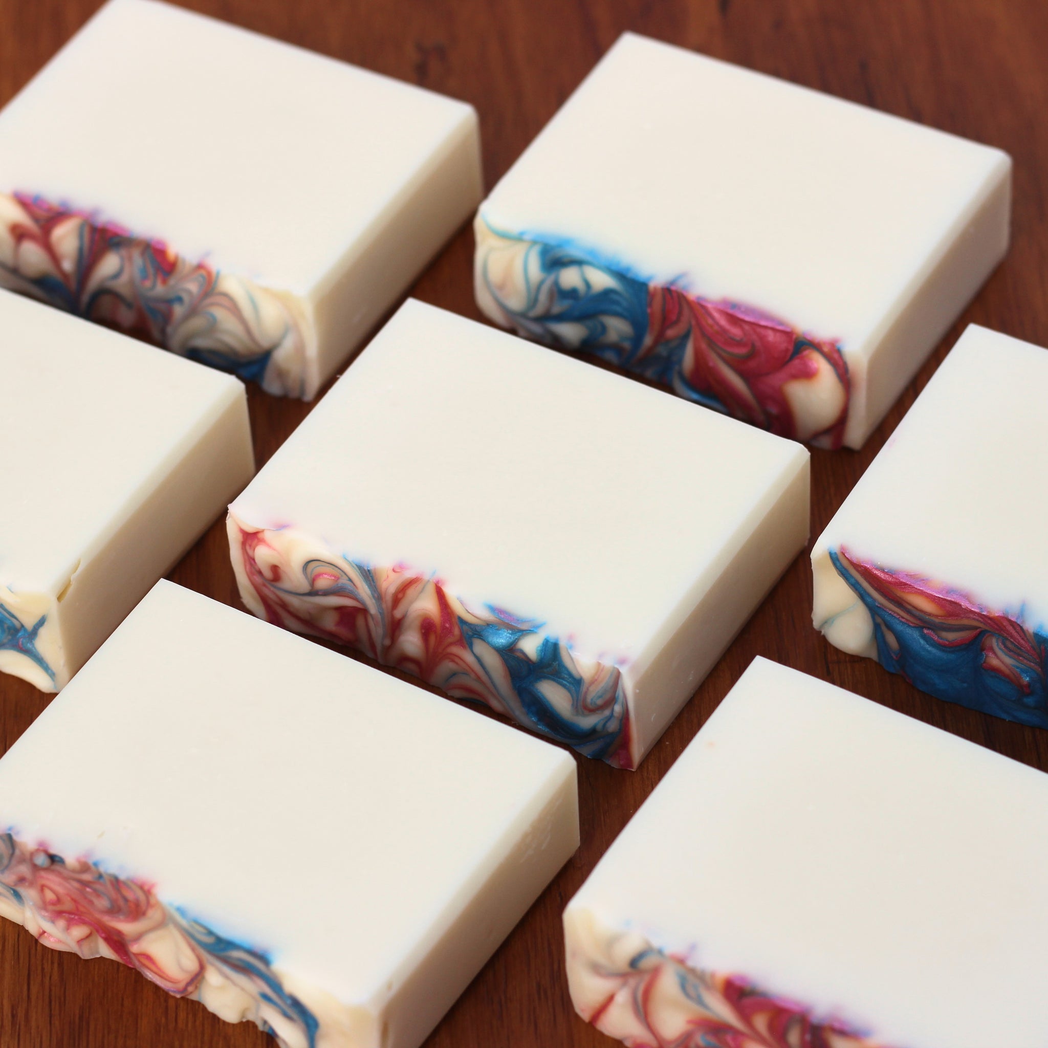 Ingredients: Olive Oil, Coconut Oil, Water, Sodium Hydroxide, Shea Butter, Castor Oil, Fragrance, Titanium Dioxide, Mica, Ultramarines, Silk